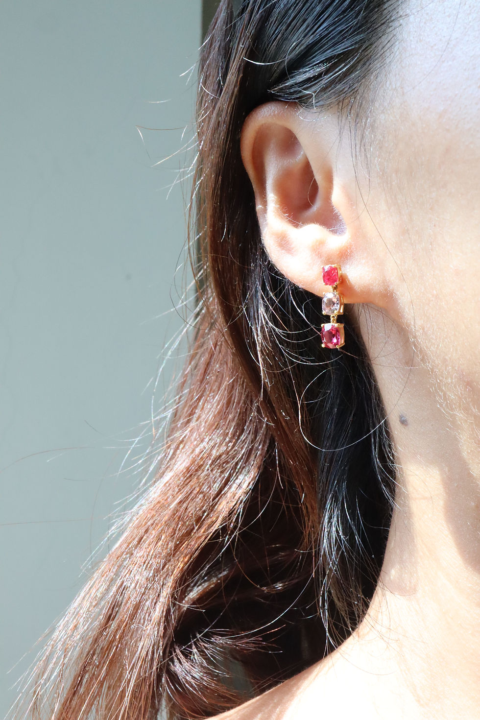 Grey Spinel and Man Sin Pinkish Red Spinel Earring in 18k yellow gold