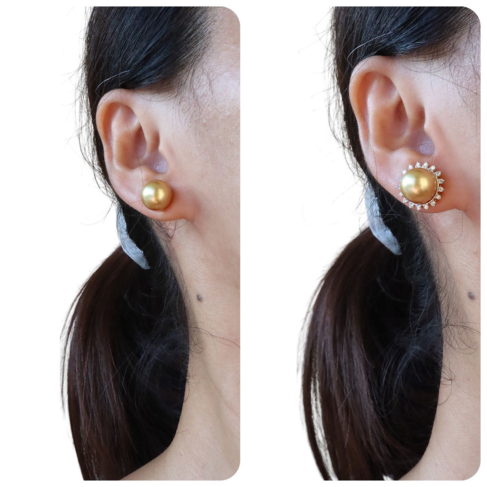 10.90mm Intense Gold South Sea Pearl Earring with Natural Diamonds enhance