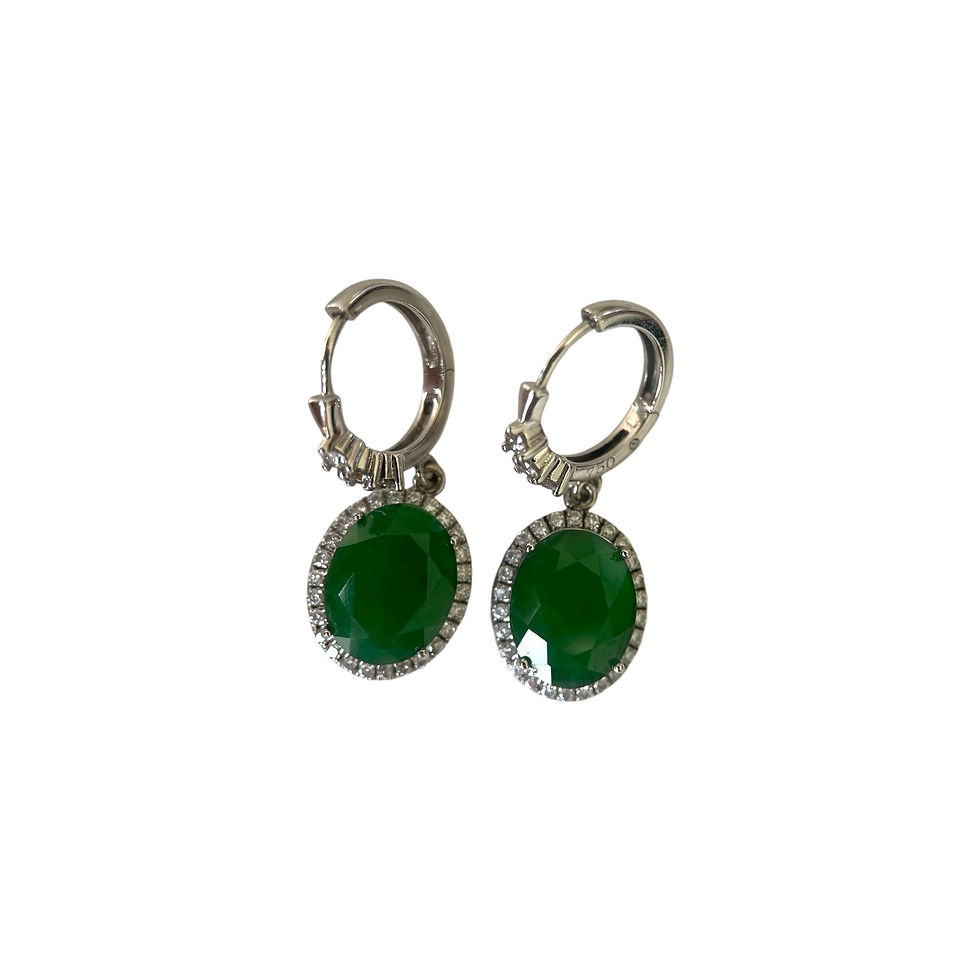 Grade A Burma Jadeite Jade and Diamonds earring in 18k solid gold