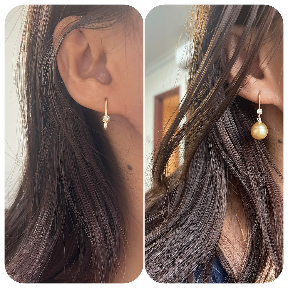 (Bespoke Order Ref: )10mm golden south sea pearl earring in 18k solid gold