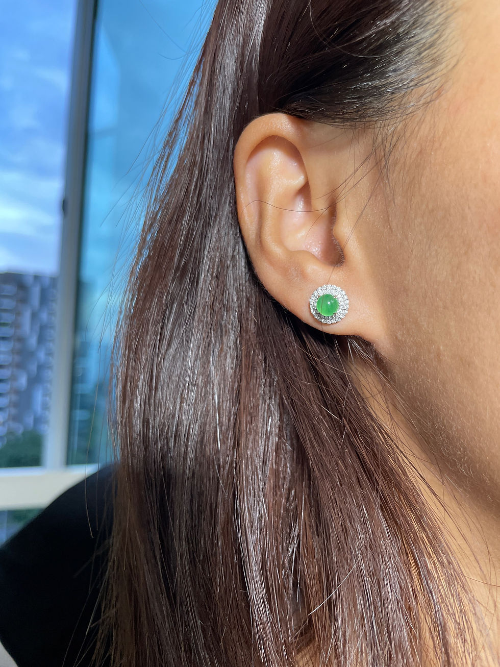 1.5Ct Grade A Burma Jadeite Jade and Natural Diamond Stud earring in 18k gold