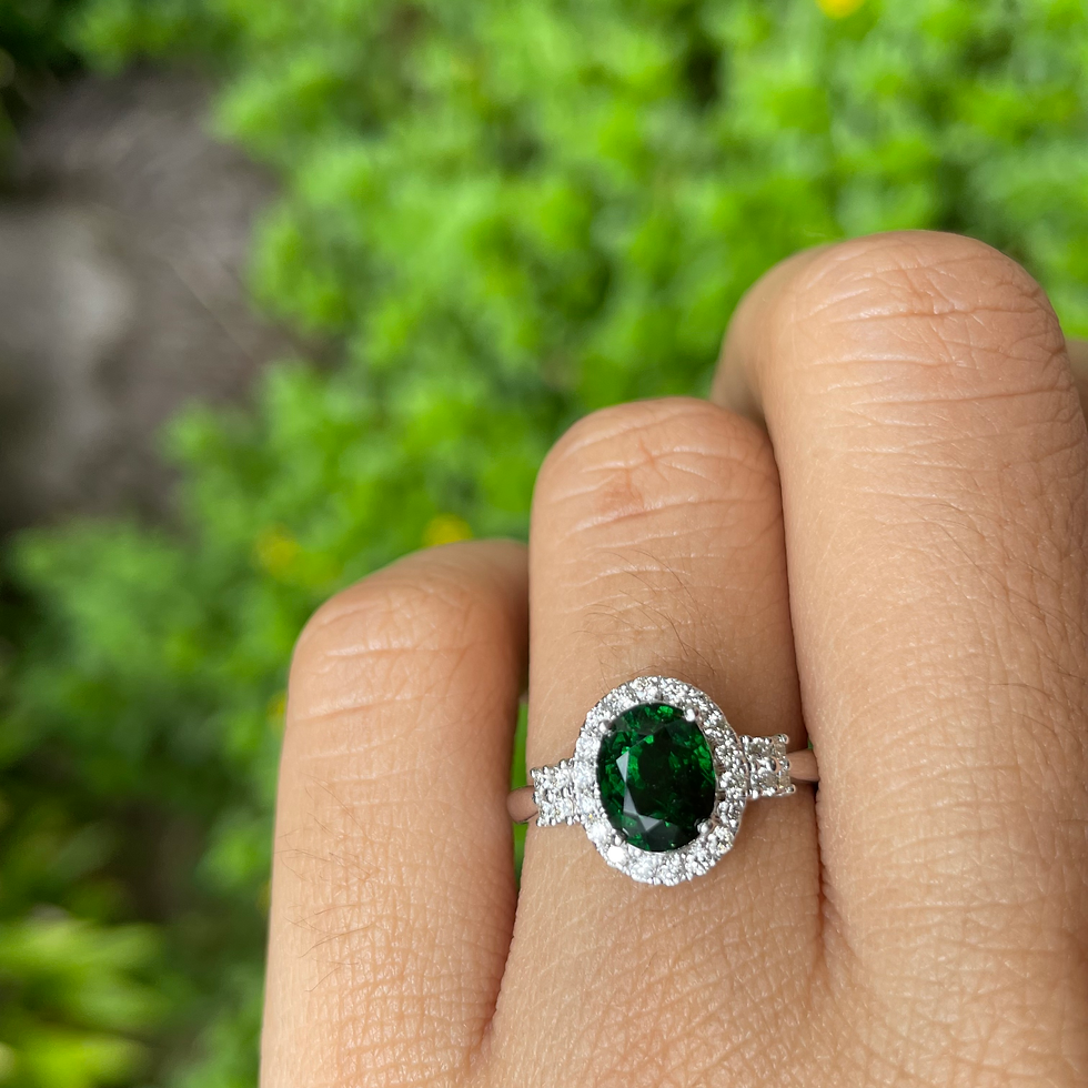 2Ct Vivid green Tsavorite Garnet and Natural Diamond Ring
